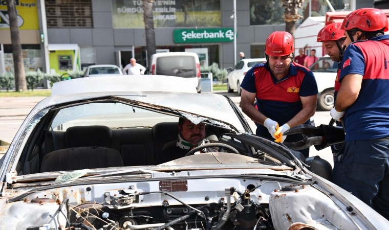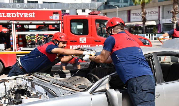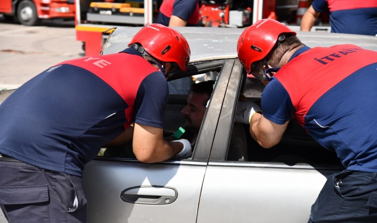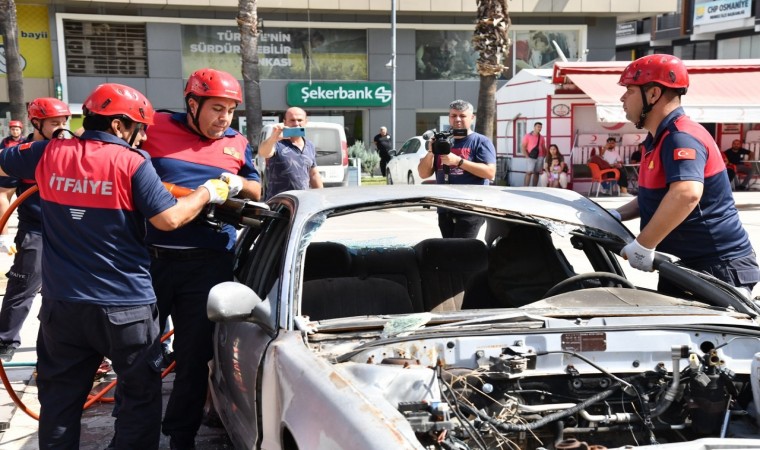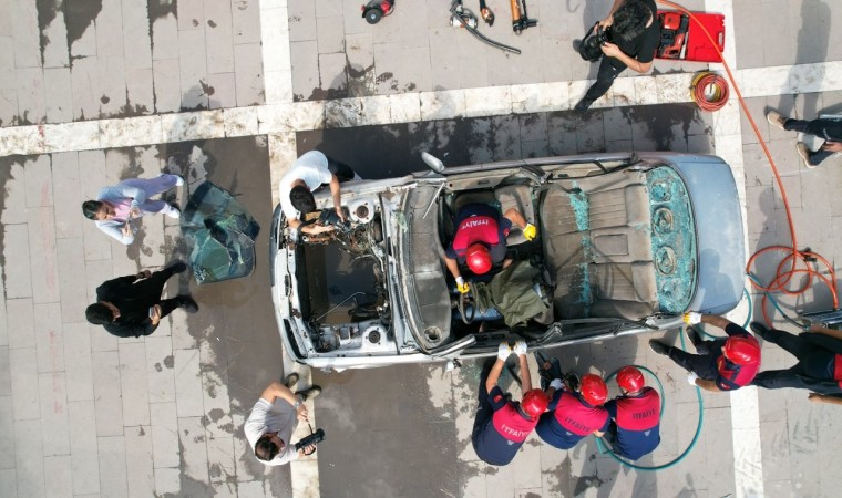 Daha sonra, itfaiye ekiplerince gerçekleştirilen kazazede kurtarma tatbikatı ise gerçeğini aratmadı. Senaryo gereği takla atan otomobil içerisinde sıkışan sürücü itfaiye ekiplerinin çalışması sonucu çıkartılarak sağlık ekiplerine teslim edildi. Sedyeyle taşınıp ambulansa alınan yaralı hastaneye sevk edildi. Köpüklü ve kuru tozlu yangın söndürme tatbikatının ardından, iki itfaiye erinin yangın merdiveninden halatlar yardımı ile Türk bayrağı açarak inişleri ilgiyle izlenip, büyük alkış aldı.