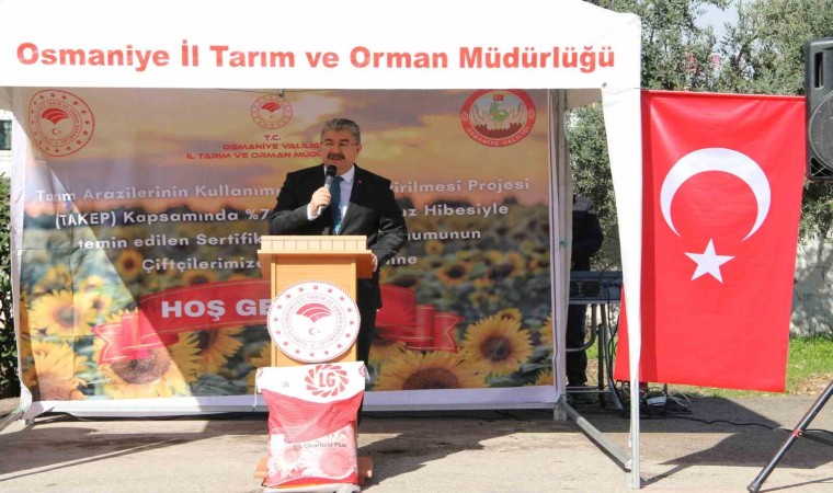 Osmaniye’de Tarım Arazilerinin Kullanımının Etkinleştirilmesi Projesi (TAKEP) çerçevesinde, Osmaniye Valisi Dr. Erdinç Yılmaz’ın katılımıyla düzenlenen programda, 500 çiftçiye 2825 kilogram olmak üzere toplam 250 torba ayçiçeği tohumu dağıtıldı. Tarım ve Orman İl Müdürlüğünde düzenlenen programa Vali Yılmaz’ın yanı sıra Tarım ve Orman İl Müdürü Erdem Kolabaş, Osmaniye Ticaret Borsası Başkanı Sait Çenet, siyasi parti temsilcileri ve üreticilerimiz katıldı.
