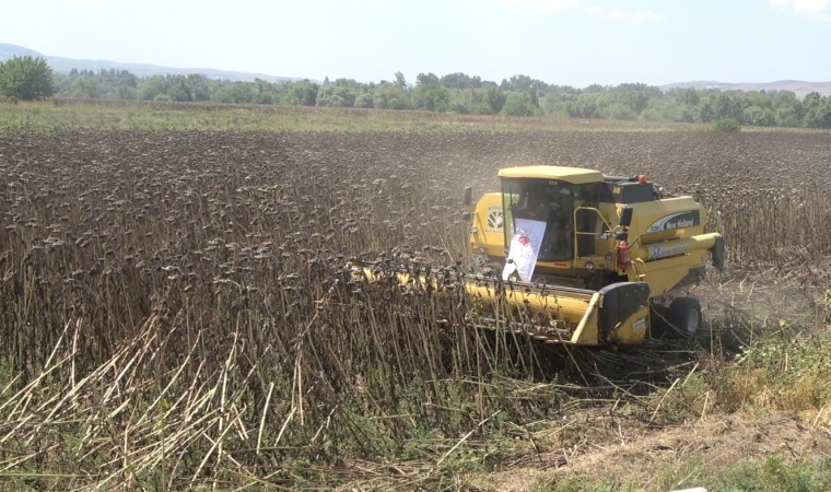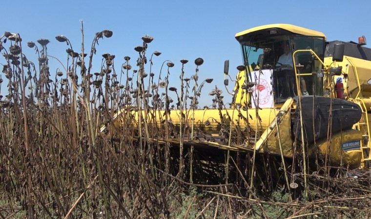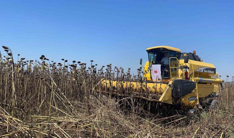 Osmaniye’de alternatif tarım ürünü olarak ekimi yapılan yağlık ayçiçeğinde hasat dönemi başladı.
