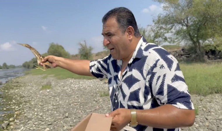 Osmaniye’de yol kenarında bitkin bulduğu, Alacabalıkçıl kuşunu alıp ofise götüren Ali Demir, kuşu besleyip su verdikten sonra doğal yaşam ortamına bıraktı.
