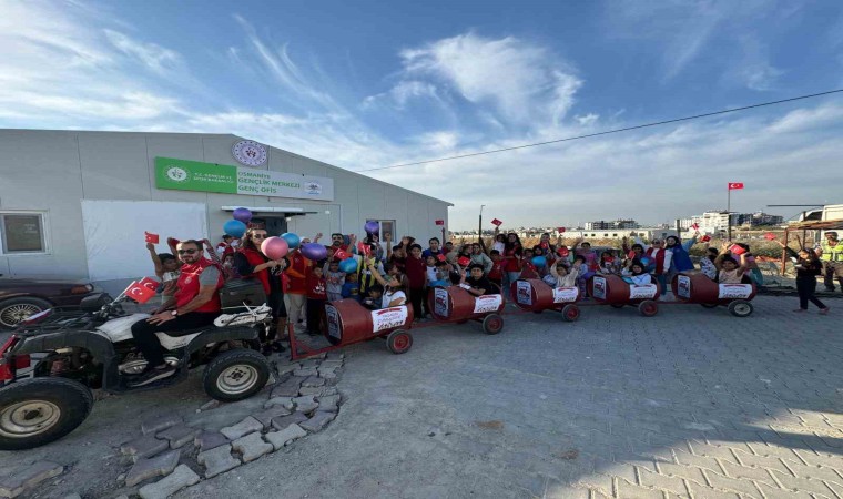 Osmaniye Gençlik ve Spor İl Müdürlüğü’ne bağlı Osmaniye Gençlik Merkezi ve Konteyner Kent Genç Ofis personeli, Cumhuriyetin 101’inci yılını kutlamak için çocuklarla birlikte çeşitli etkinlikler düzenledi. Konteyner Genç Ofis üyeleri, Osmaniye Gençlik Merkezi Gençlik liderleri ve gönüllülerinin kendileri yaptıkları tırtıl aracı bayraklarla ve balonlarla süsleyerek konteyner kentte yaşayan depremzede çocuklara 29 Ekim Cumhuriyet Bayramı coşkusunu unutulmayacak bir şekilde yaşattı. Konteyner kent içerisinde tur atan araca ’Cumhuriyet Treni’ adı verildi. Depremzede çocuklar yapılan etkinlikle doyasıya eğlendi.