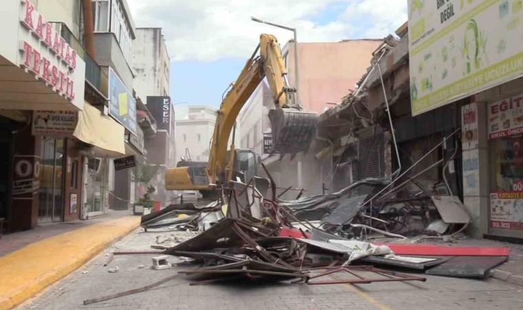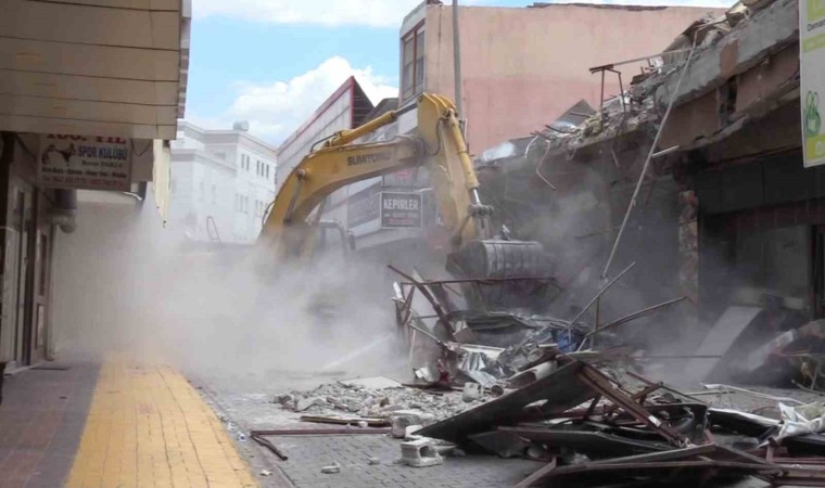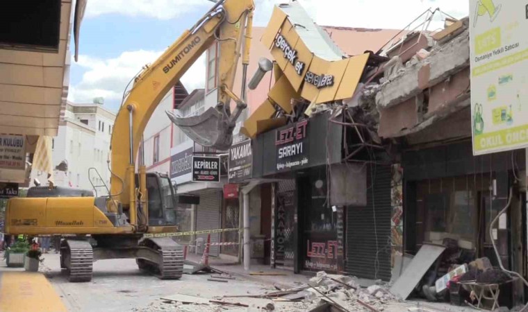 Bina çevresinde ve cadde üzerinde alınan güvenlik önlemlerinin ardından iş makineleriyle kontrollü olarak yıkıma başlandı.
