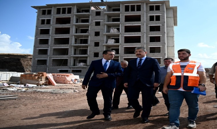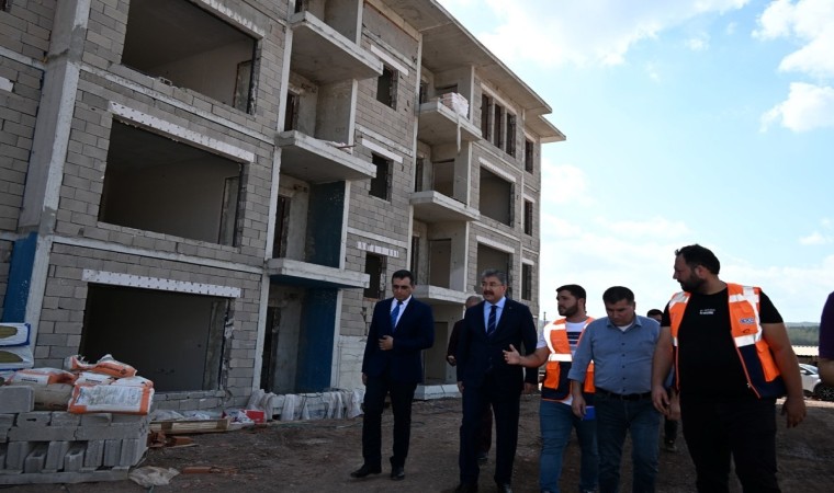 Osmaniye merkez, Akyar Mahallesinde yapımı devam eden deprem konutları inşaatında, Çevre, Şehircilik ve İklim Değişikliği İl Müdür Yardımcısı Uğur Acar ile birlikte incelemelerde bulunan Osmaniye Valisi Dr. Erdinç Yılmaz, devam eden çalışmalar hakkında bilgi aldı.
