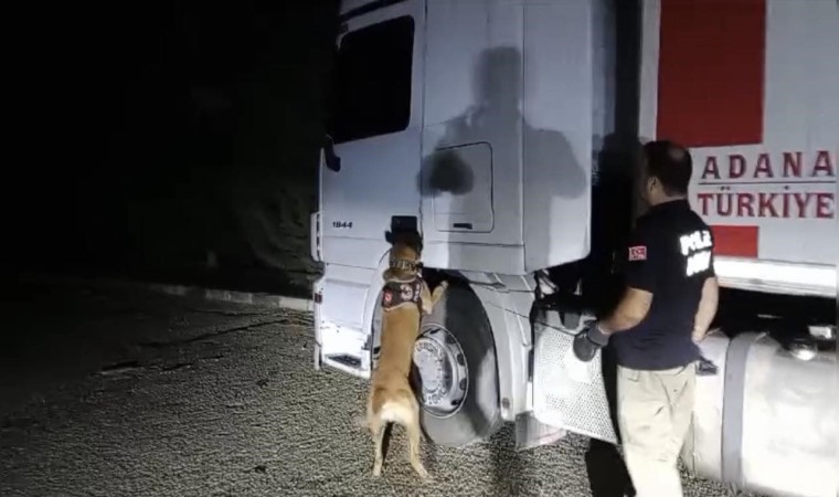 Osmaniye Emniyet Müdürlüğü ekipleri, uyuşturucu madde taşıdığı şüphesi üzerine takibe alınan tırı kontrol noktasında durdurdu. Ekiplerin, hassas burunlu narkotik köpeği ile tırda yaptığı aramada 45 kilo 750 gram esrar maddesi ele geçirildi. Ekipler, tırda bulunan O.K., M.Ç., L.P. ve G.T. isimli 4 şüpheliyi gözaltına aldı.