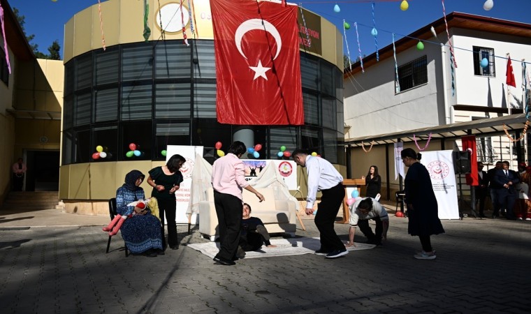 Osmaniye Aile ve Sosyal Hizmetler İl Müdürlüğü tarafından, Osmaniye Bakım Rehabilitasyon ve Aile Danışma Merkezi’nde düzenlenen programda Vali Erdinç Yılmaz ve beraberindekiler, program öncesinde öğrenciler tarafından yapılan el emeği ürünlerin ve resimlerin yer aldığı sergiyi gezerek, öğrencileri tebrik ettiler. Osmaniye Bakım, Rehabilitasyon ve Aile Danışma Merkezi öğrencilerinin koro gösterisi devam eden programda öğrenciler tarafından ’Filistin Ağıdı’ isimli piyes sergiledi.