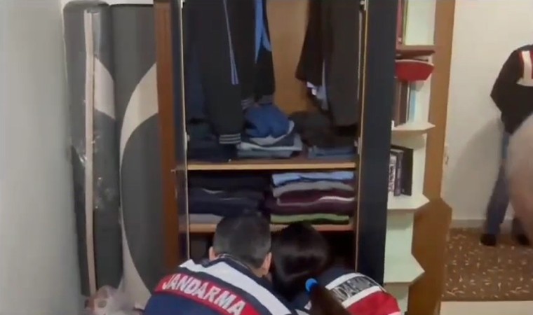 Evde yapılan adli arama sonucunda hükümlü kadın, yatak odasındaki elbise dolabında açılır-kapanır vaziyetteki düzeneğin arkasındaki gizli bölmede yakalandı.