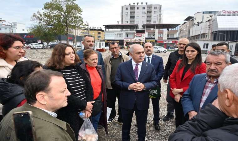 Yerinde dönüşüm yapılacak arsalarda incelemelerde bulunan Çevre, Şehircilik ve İklim Değişikliği Bakan Yardımcısı Vedad Gürgen ve Belediye Başkanı Kadir Kara burada hak sahipleri temsilcileriyle görüştü.
