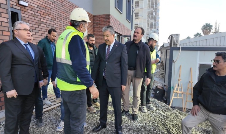 "Depremde evleri ve dükkanlarını kaybeden hemşehrilerimiz için durmadan çalışıyoruz" diyen Osmaniye Valisi Erdinç Yılmaz, “Depremde büyük zarar gören, yıkılan Metin Tamer ve Sefa Evler sitelerimizin inşaat alanındayız. İnşaatımız hızla devam ediyor. Yaklaşık yüzde 70 oranında tamamlanmış durumda. Metin Tamer Sitemizde 427 daire, 88 dükkân bulunmaktadır. Sefa Evleri’nde de 317 daire, 70 dükkân bulunuyor. Depremde evlerini kaybeden hemşehrilerimizi evlerine, dükkânlarını kaybeden hemşehrilerimizi dükkânlarına kavuşturmak için var gücümüzle çalışıyoruz. İnşallah mart ayında Metin Tamer Sitemizi, mayıs ayında da Sefa Evler Sitemizi bitirmiş olacağız. Hemşehrilerimize şimdiden hayırlı olmasını diliyoruz” dedi.