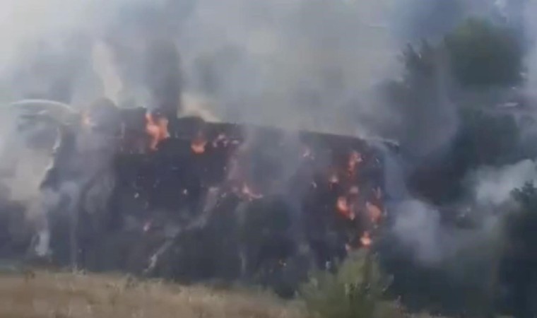 Osmaniye’nin Toprakkale ilçesinde saman balyalarının istiflendiği alanda çıkan yangın ekiplerce söndürüldü.