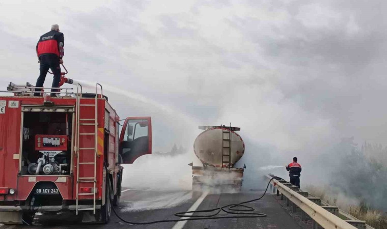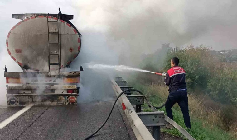 Osmaniye’nin Düziçi ilçesinde seyir halindeki tankerde yangın çıktı.