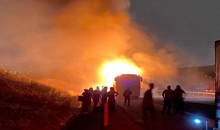 Osmaniye’de seyir halindeki otobüsün motor bölümünden çıkan yangın tüm otobüsü sardı, şoför ve yolcular son anda kurtuldu.