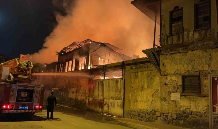 Osmaniye’de tarihi ahşap konak alevlere teslim olurken yangına itfaiye ekipleri müdahale ediyor.