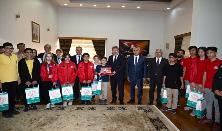Vali Yılmaz, Osmaniye merkez, Kadirli, Toprakkale ve Düziçi’nden yarışmalara katılan Ayşe Sude Erzurumlu, Berkay Ata Sünbül, Egemen Velioğlu, Hüsnagül Dombaloğlu, Mahmut Sami Kaytan, Mehmet Ali Cuma, Mehmet Asaf Çakmak, Selim Erdem Galip, Sena Gündoğan, Şevket Talha Narcıoğlu, Yavuz Selim Talan, Ahmet Emir İspir ile bir süre sohbet etti. Vali Erdinç Yılmaz, başarılarından dolayı tebrik ettiği öğrencilere hediye verdi.
