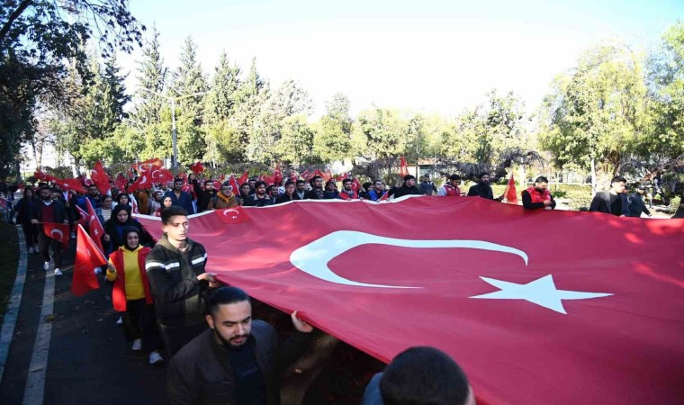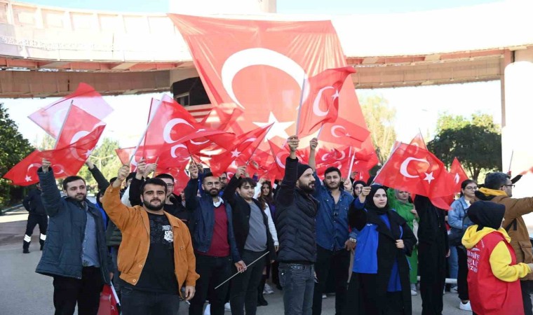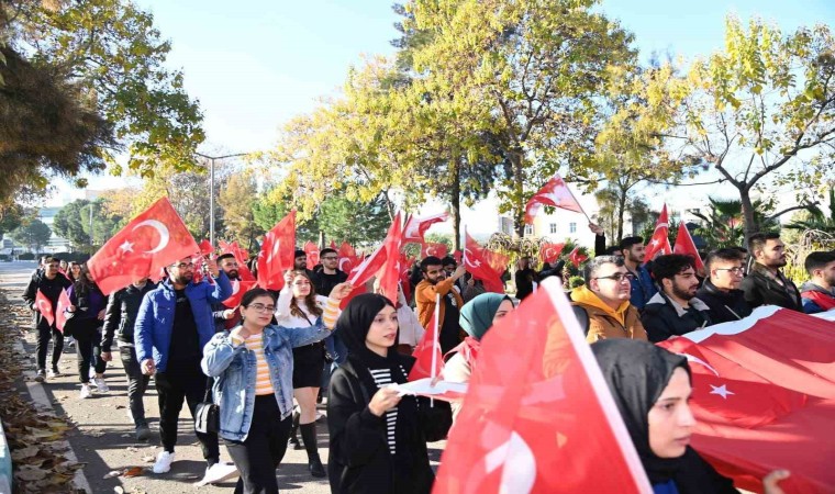 Osmaniye Korkut Ata Üniversitesi öğrenci kulüpleri, Karacaoğlan Yerleşkesinde bir araya gelen çok sayıda öğrenci, ellerinde Türk bayrakları taşıyarak terörü lanetleyen yürüyüş yaptı.