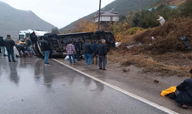 Osmaniye’de yağış nedeniyle kayganlaşan yolda yolcu minibüsünün devrildiği kazada 6 kişi yaralandı.