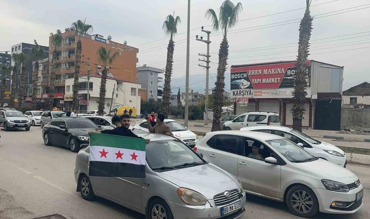 Osmaniye’de yaşayan Suriyeliler, Esed rejiminin düşmesiyle birlikte konvoy yaparak sevinçlerini sokaklara taşıdı.