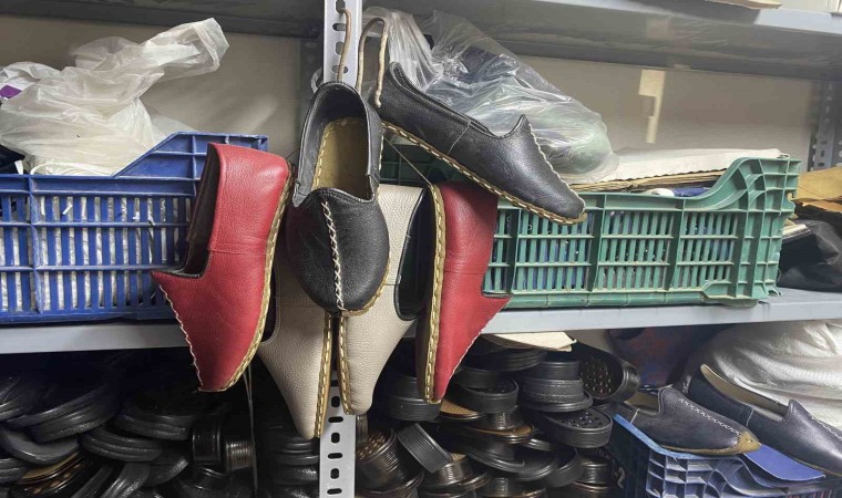 Kahramanmaraş’ta depremde iş yeri yıkılan esnaf, konteyner çarşıda Osmanlı döneminden kalma geleneksel çarık üretimini devam ettiriyor.