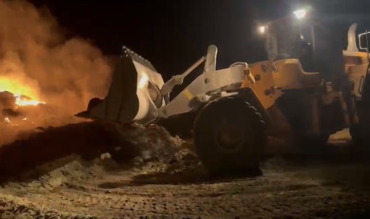 Hakkari’nin Yüksekova ilçesinde ot yığınlarında çıkan ve ekiplerin kontrol altına aldığı yangın, akşam saatlerinde yeniden başladı. Alevler, iş makinalarının kumlu müdahalesi ve ekiplerin yoğun çalışmasıyla söndürüldü.