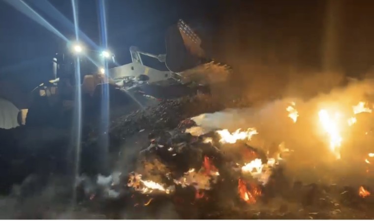 Ot yığınları akşam saatlerinde tekrar alev almaya başlamasıyla bölgeye tekrar itfaiye ve iş makineleri sevk edildi. Bir yandan yangına itfaiye ekipleri müdahale ederken, bir yandan da iş makineleri alevlerin üzerine kum döktü. Yaklaşık 2 saatlik müdahalenin ardından yangın söndürülürken 6 bin bağ ot kül oldu.