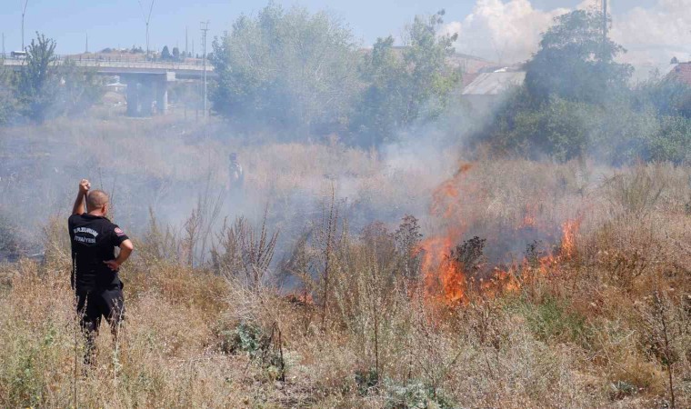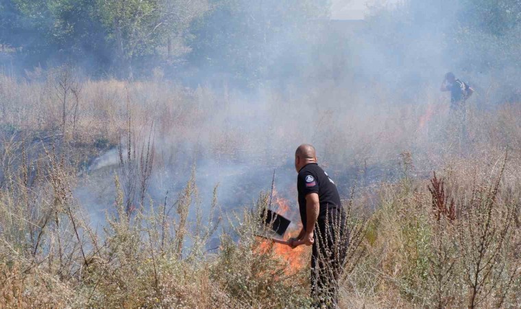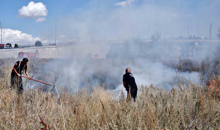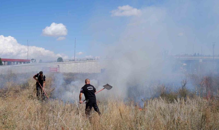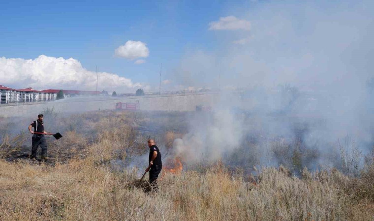 Erzurum’da boş alanda meydana gelen ot yangını bir anda her tarafın alev sarmasına neden oldu.