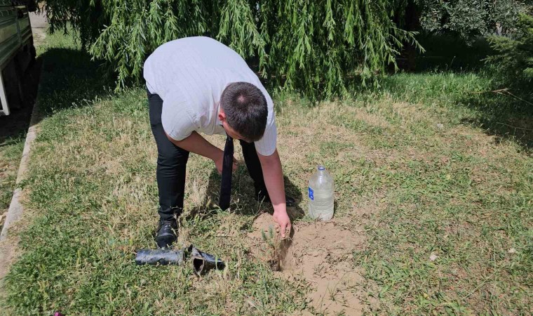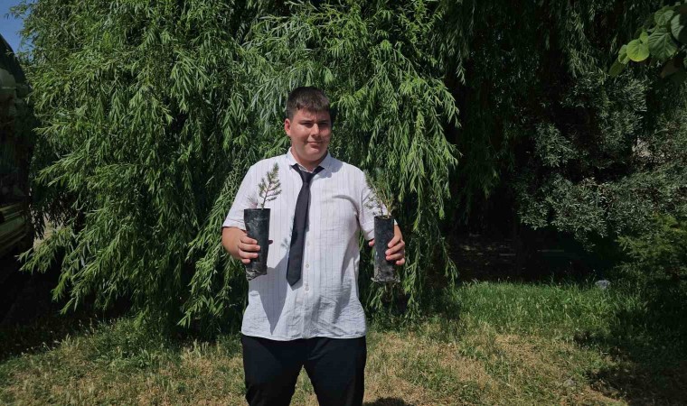Büyük bir özenle diktiği fidanları yine büyük bir özen ve hassasiyetle sulamayı da ihmal etmeyen otistik Kerem’in bu hareketi yürekleri ısıttı.