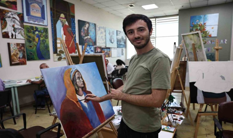 Bağcılar Belediyesi Engelliler Sarayı, yaz mevsimi boyunca da hizmet vermeye devam ediyor. Hafta içi her gün açık olan Resim Atölyesi’nde 35 engelli ders alıyor. Burada eğitim görenlerden biri de Mimar Sinan Üniversitesi Güzel Sanatlar Fakültesi 4’üncü sınıf öğrencisi otizmli Hamza Danışmanoğlu, yaz tatili boyunca Engelliler Sarayı’na gelip gün boyu yağlı boya çalışması yaptı.