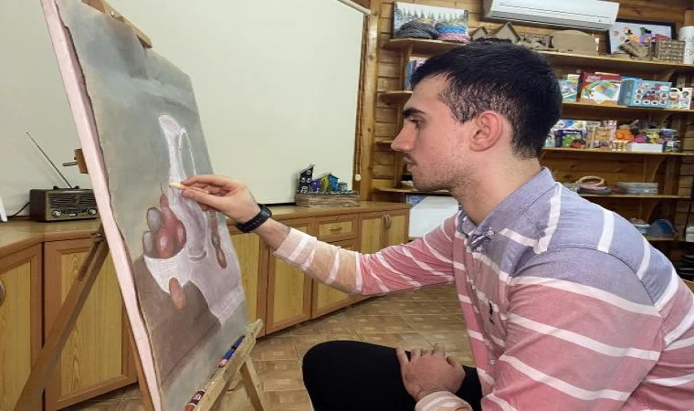 Mehmet Can PEÇE/RİZE, (DHA)- RİZE'de 3 yaşında otizm teşhisi aldıktan sonra ailesinin desteği ile resme yeteneği keşfedilen Yusuf Usta (23), özel yetenekle girdiği Recep Tayyip Erdoğan Üniversitesi (RTEÜ) Resim İş Öğretmenliği Bölümü'nden mezun oldu. Öğrencilerine öğretmenlik yapacağı günün hayalini kuran Usta, "Hayallerimi tuvale çizerek, bugüne geldim" dedi.