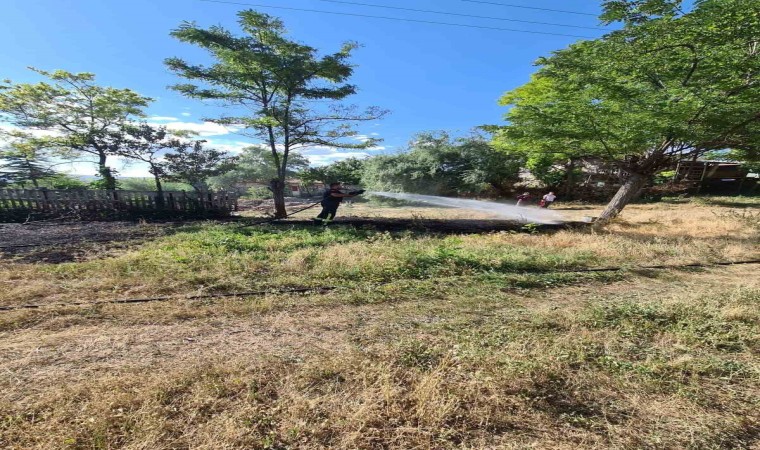 Çankırı’da otluk alanda başlayan yangın evlere sıçramadan söndürüldü.