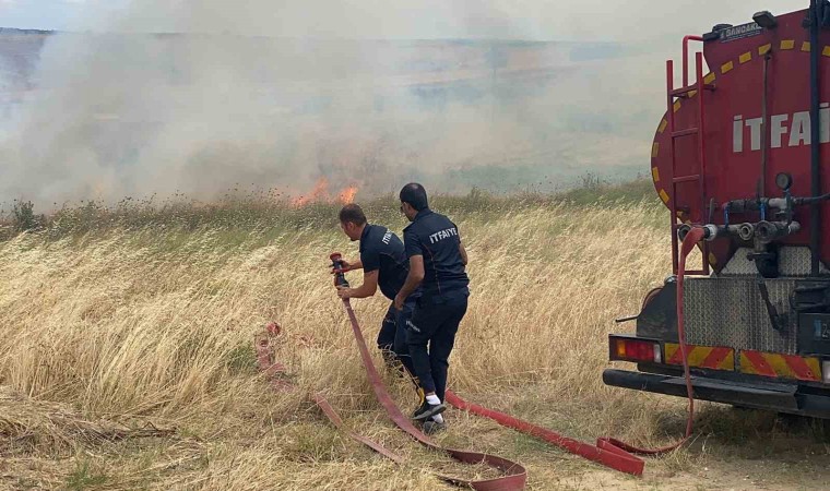 Edirne’de oltuk alanda başlayan yangın, itfaiye ekiplerinin erken müdahalesiyle yakındaki evlere ulaşmadan söndürüldü.
