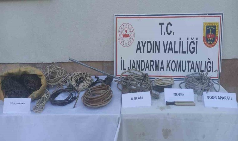 Olay, Eskiçine Mahallesi’nde geçtiğimiz günlerde meydana geldi. Edinilen bilgiye göre, bir şahsa ait arazi içerisinde bulunan sulama dinomosuna bağlı yaklaşık 80 metre bakır elektrik kablosu kimliği belirsiz kişi yada kişilerce çalındı. Durumun 112 Acil Çağrı Merkezi’ne bildirilmesinin ardından Çine İlçe Jandarma Komutanlığı ekipleri olayın aydınlatılması için çalışma başlattı. İlçe Jandarma Komutanlığınca yapılan detaylı çalışmalar sonucu hakkında olayın şüphelisinin ’kullanmak İçin uyuşturucu veya uyarıcı madde satın almak, kabul etmek, bulundurmak ve kullanmak’ suçundan 910 gün hapis cezası ile yakalama kararı bulunan aranması bulunan M.D. (45) isimli erkek şahıs olduğu tespit edildi. Şüphelinin Eskiçine Mahallesi’nde arazisinde bulunan barakaya operasyon düzenlendi. Düzenlenen operasyonda baraka içerisinde yapılan aramada; 1 adet uyuşuturucu maddede kullanılan bong aparatı, 1 adet kablo kesiminde kullanılan kerpeten, 1 adet manuel el kantarı, 1 adet sarı çuval içerisinde yaklaşık 70 kg ağırlığında eritilmiş bakır kablo, parçalara ayrılmış halde yaklaşık 80 metre uzunluğunda bakır elektrik kablosu ve yaklaşık 600 metre elektrik kablosu ele geçirildi. Operasyon kapsamında M.D. isimli şüpheli ise dere yatağında bulunan sazlık otluk alan içerisinde gizlenmeye çalışırken jandarma ekipleri tarafından kıskıvrak yakalandı. Jandarmadaki işlemlerinin ardından adliyeye sevk edilen M.D. çıkartıldığı adli makamlarca tutuklanarak cezaevine gönderildi.