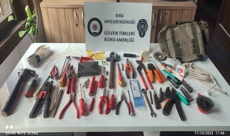 Merkez, Osmangazi ilçesi Kükürtlü Mahallesi’nde oturan Fatih S., aracını evinin bulunduğu sokaktaki otoparka park etti. İşe gitmek için yatağından kalkan Fatih Ş., bindiğinde otomobilinde bıraktığı kredi kartı, 20 bin lira para ve malzemelerinin araçta olmadığı fark edince durumu hemen polise bildirdi. Mağdur adamın imdadına yetişen Bursa Asayiş Şube Müdürlüğü, Güven Timleri Amirliğine bağlı ekipler, inceledikleri güvenlik kamerasında çok sayıda suç kaydı bulunan S.K ve M.K’yı olduğunu tespit etti. Polis ekipleri adım adım takip ettiği iki şüpheliyi düzenlendikleri operasyonla yakalamayı başardı. Çalınan malzemeleri de bulan ekipler gerekli işlemlerin ardından mağdur olan Fatih S.’ye teslim etti.