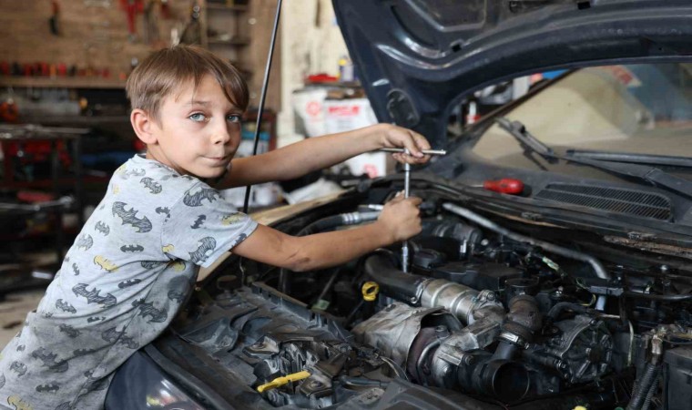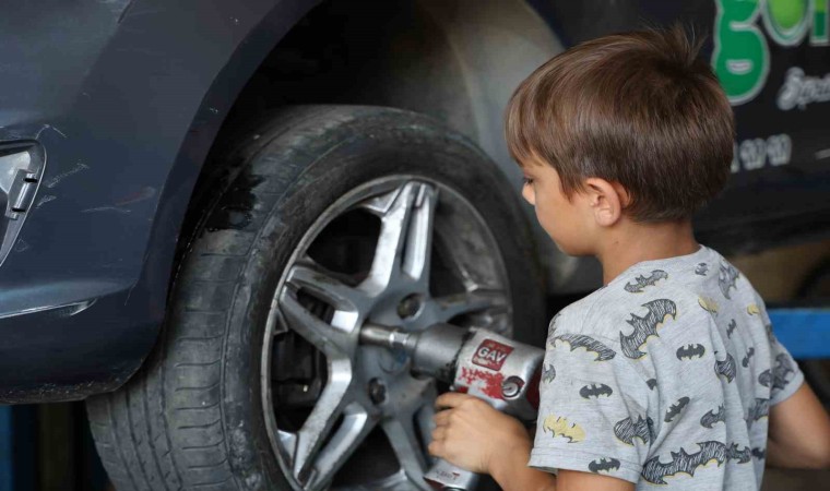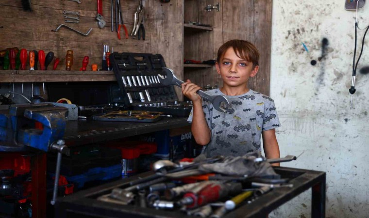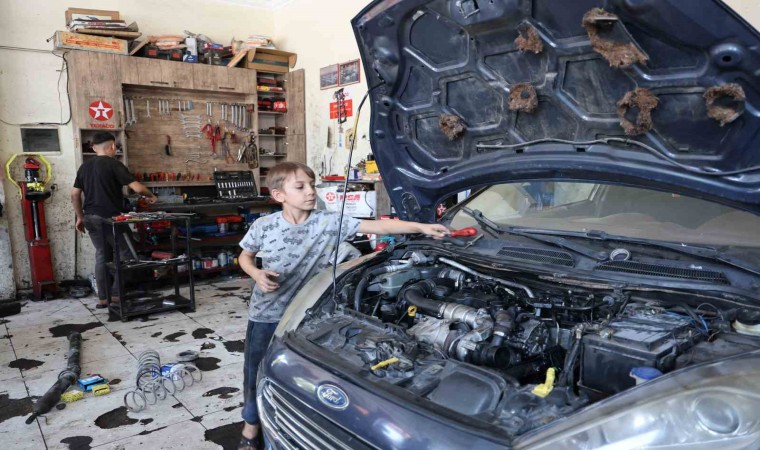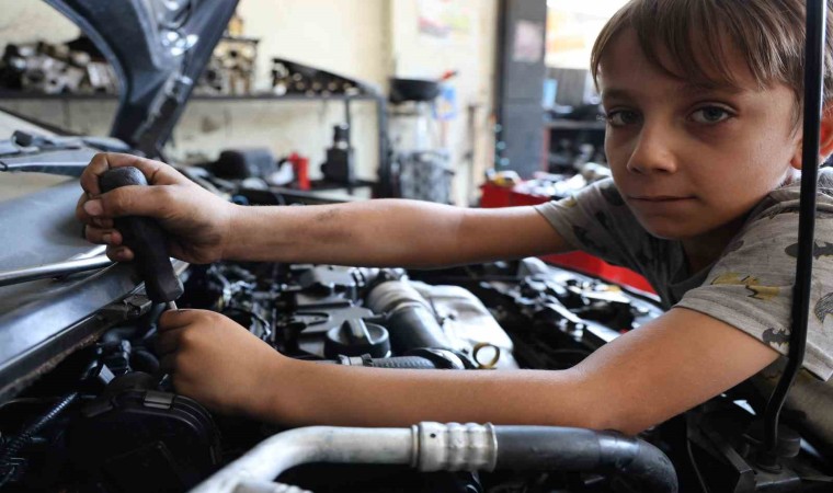 Kahramanmaraş’ta 5. sınıfa giden 11 yaşındaki Muhammet Emin Kaya, babasının desteği ile ağabeyinin iş yeri olan Küçük Sanayi Sitesi’ndeki oto tamir ve bakım servisinde çalışıyor.