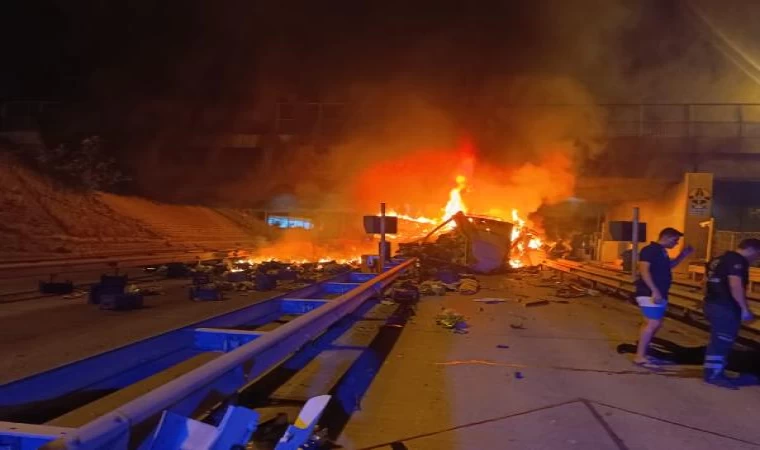 Olay, sabaha karşı İskenderun otoban gişelerinde meydana geldi. Mersin'in Anamur ilçesinden yüklenen muzlarla İskenderun otoban gişelerine gelen plakası belirlenemeyen kamyonet, bariyerlere çarptı. Kamyonet bir anda alev aldı. Bölgeye itfaiye, sağlık ve polis ekibi sevk edildi. İtfaiye ekipleri yangını söndürürken, araç kullanılamaz hale geldi. Sağlık ekipleri, yerde yatan ve ismi öğrenilmeyen şoföre ilk müdahaleyi olay yerinde yaptı. Kamyonet şoförü daha sonra ambulansla hastaneye götürüldü. Polis, güvenlik amacıyla kapattığı yolu bir süre sonra trafiğe tekrar açtı. (DHA)