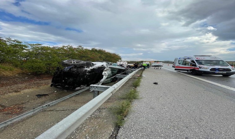 Kırklareli’nin Babaeski ilçesinde bariyerlere çarpan otomobilin kontrolden çıkarak yan yatması sonucu meydana gelen trafik kazasında 4 kişi yaralandı.