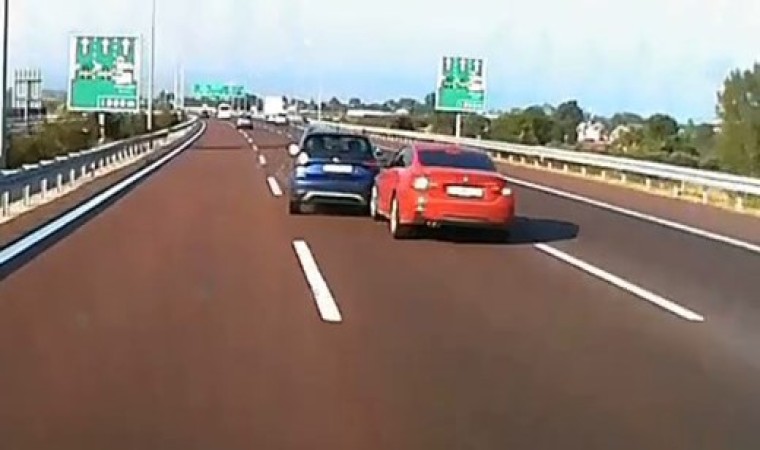 Olay, Yalova’nın Altınova ilçesinde meydana geldi. O-5 Otoyolu’nda Osmangazi Köprüsü mevkiinde ilerleyen bir otomobilin sürücüsü, bilinmeyen bir nedenden dolayı önündeki otomobili takibe başladı. Seyir halindeki mavi otomobilin sürücüsü ise arkasından gelen araca yol vermemek için riskli manevralar yaptı. Gişelere gelen otomobiller bir süre durakladıktan sonra gözden kayboldular. O anlar, arkadan gelen başka bir otomobilin araç içi kamerasına saniye saniye yansıdı.