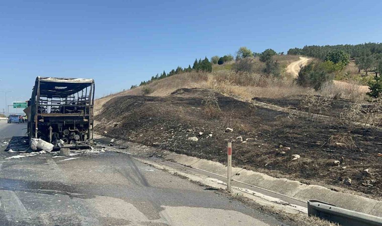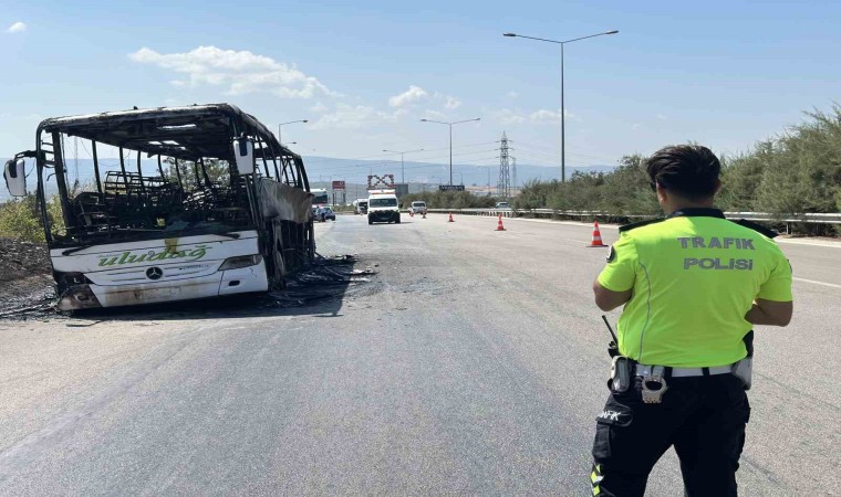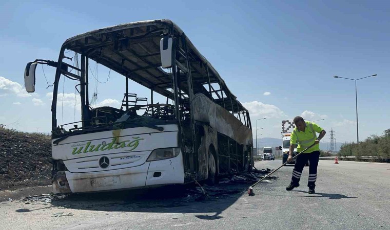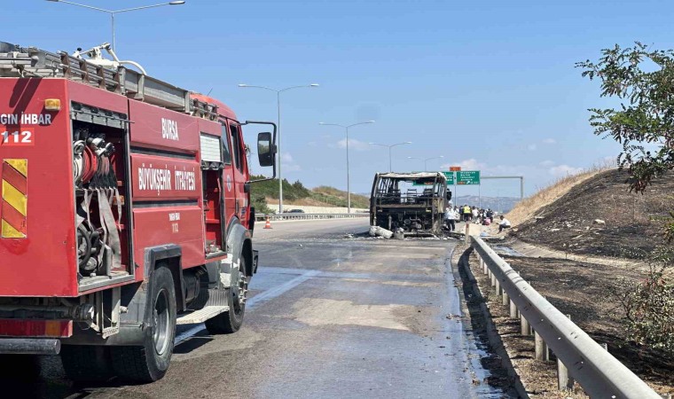 Bursa’da 41 yolcunun bulunduğu otobüs alevlere teslim oldu. Otoyolda can pazarı yaşanırken, jandarma timleri yolcuları tahliye ederek başka bir otobüse nakletti. Yolcu otobüsünden büyüyen alevler otluk alana sıçradı. Her iki yangın, itfaiye ekipleri tarafından söndürüldü. Otobüs şoförünün hüzünlü bekleyişi işe yürekleri dağladı.