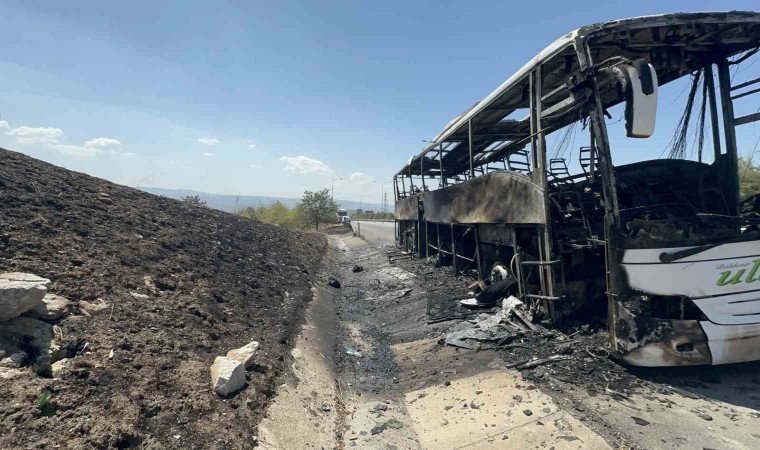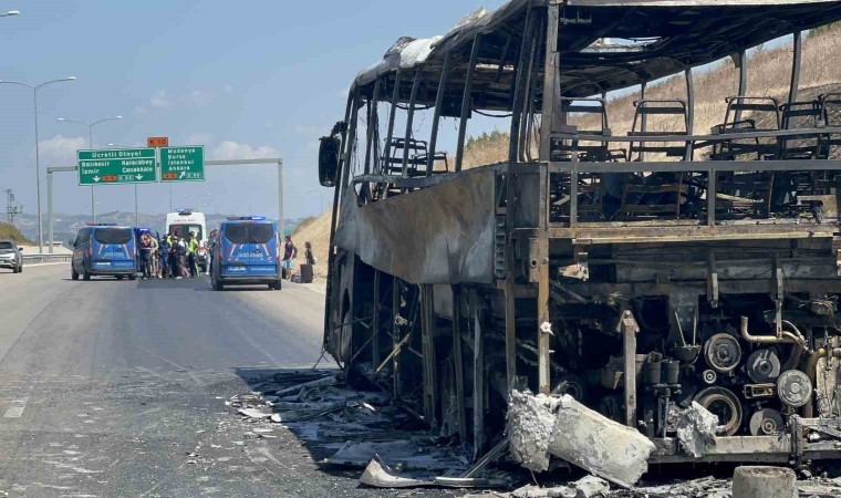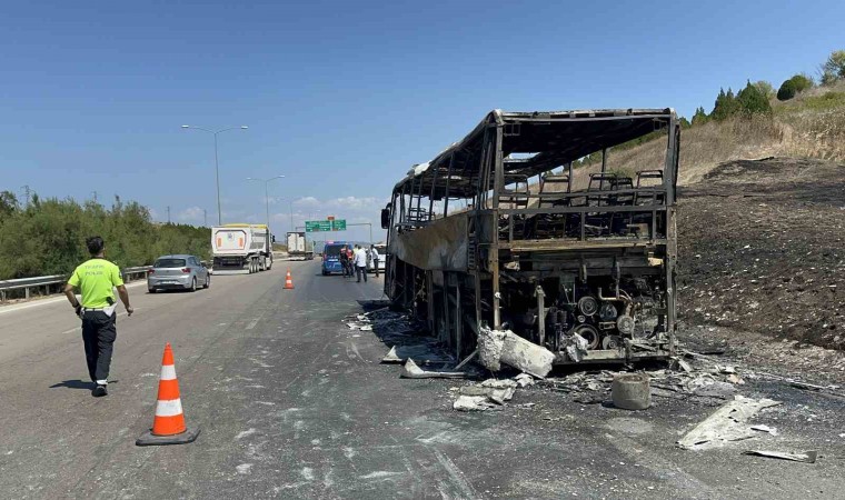 41 yolcu akan trafikte yol kenarında otobüslerinin yanışını izledi. Yolcular otoyoldan jandarma timlerince tahliye edilerek başka bir otobüse nakledildi. Otobüs şoförünün hüzünlü bekleyişi ise yürekleri dağladı.