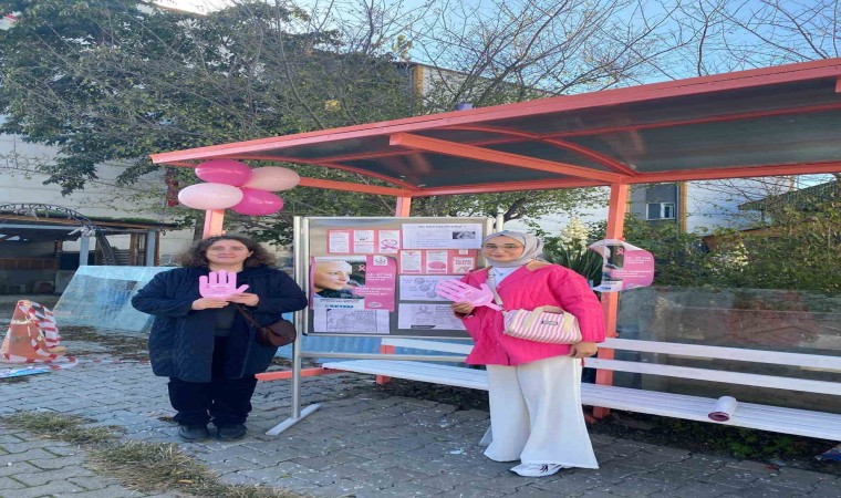 DÜZCE(İHA) – Düzce Sağlık Müdürlüğünü bağlı ekipler meme kanseri farkındalık ayında farklı bir etkinlik yaptılar. Sağlık ocağı otobüs durağı balon ve afişlerle süslendi durakta bekleyenlere bilgilendirme yapıldı.