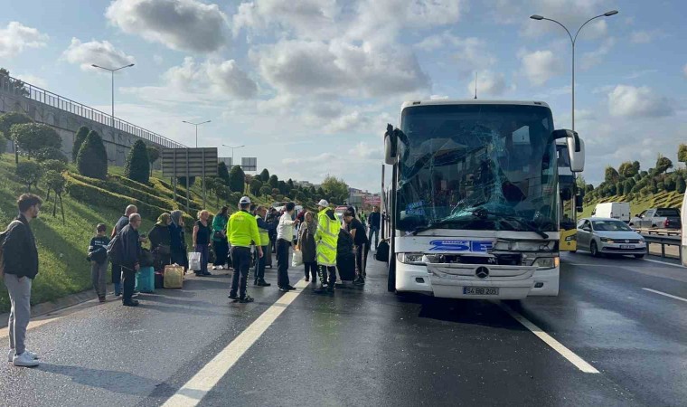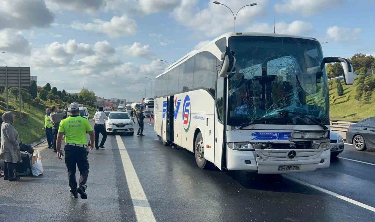 Anadolu TEM Otoyolu’nda zincirleme kaza meydana geldi. Kazada kamyon sürücüsü hafif yaralanırken kazaya karışan otobüsün içerisindeki yolcular ise valizleriyle yolda kaldı.