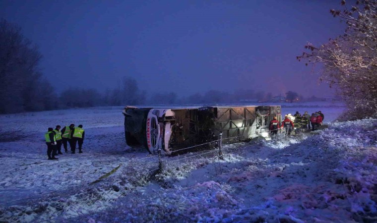 Yan yatarak durabilen yolcu otobüsünde ilk belirlemelere göre 6 kişi öldü, 3’ü ağır 33 kişi de yaralandı.