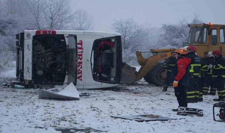 Edinilen bilgiye göre, Kastamonu-Sinop karayolu Taşköprü ilçesine bağlı Alatarla köyü mevkiinde Orhan Çelik idaresindeki Türkay Turizme ait 34 ESY 73 plakalı Mercedes marka yolcu otobüsü, sürücüsünün karlı havada direksiyon hakimiyetini kaybetmesi sonucu yoldan çıkarak tarlaya devrildi.