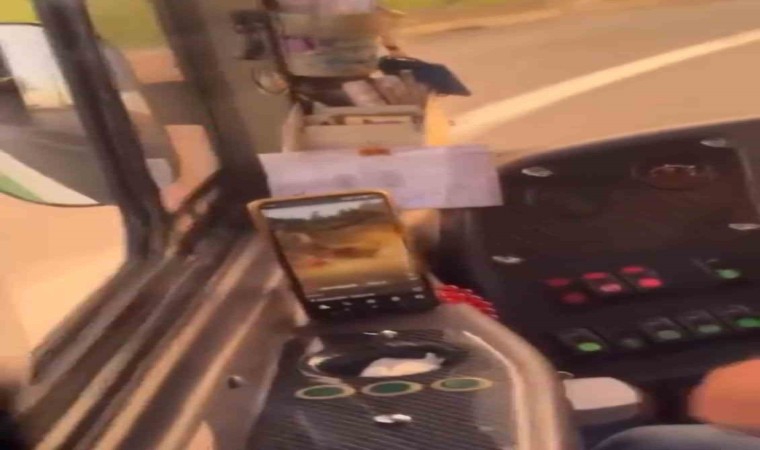 Bursa’da bir halk otobüsü şoförü direksiyon başındayken cep telefonundan video izleyip kazaya davetiye çıkardı. Yürekleri ağza getiren şoförün rahat hareketleri dikkat çekerken, yolcuların uyarılarına rağmen şoför videoyu izlemeye devam etti ve bu durum otobüste gergin anlar yaşanmasına neden oldu. Yolcular, şoförün dikkatsizliği karşısında endişe duyarken, herhangi bir kazaya yol açabilecek bu sorumsuz davranış büyük tepkiyle karşılandı. O anlar ise kameraya anbean yansıdı.