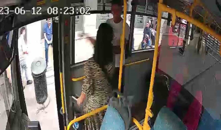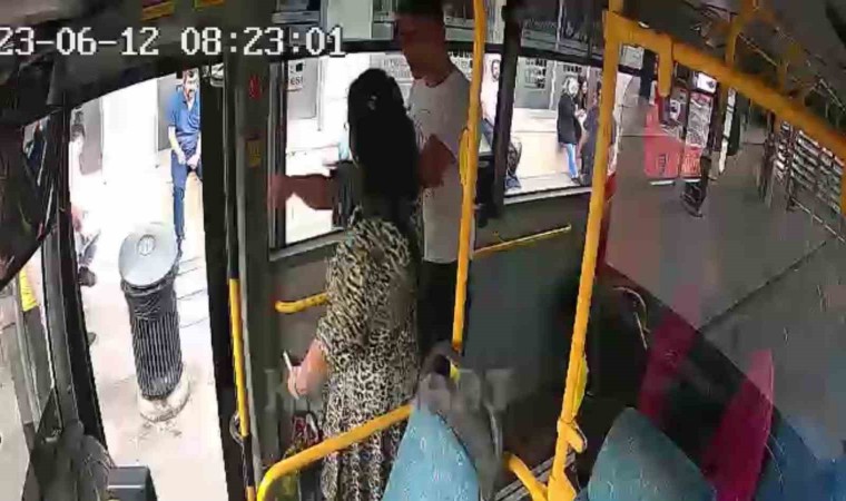 Kocaeli’nin Gebze ilçesinde 3 dakika bekleme süresi olduğunu söyleyerek otobüsü durduran şoför ile kadın yolcu arasında tartışma çıktı. Çıkan tartışmanın ardından tartaklanarak araçtan indirilen ve aracın plakasını çekmeye çalışan kadının telefonuna otobüs şoförünün el koyduğu olay, güvenlik kamerasınca kaydedildi.