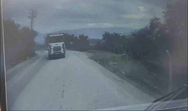 Hatay’ın Antakya ilçesinde hafriyat kamyonu ile halk otobüsünün çarpışmasına ramak kala sürücünün yaptığı manevra faciayı önledi, o anlar kameraya yansıdı.