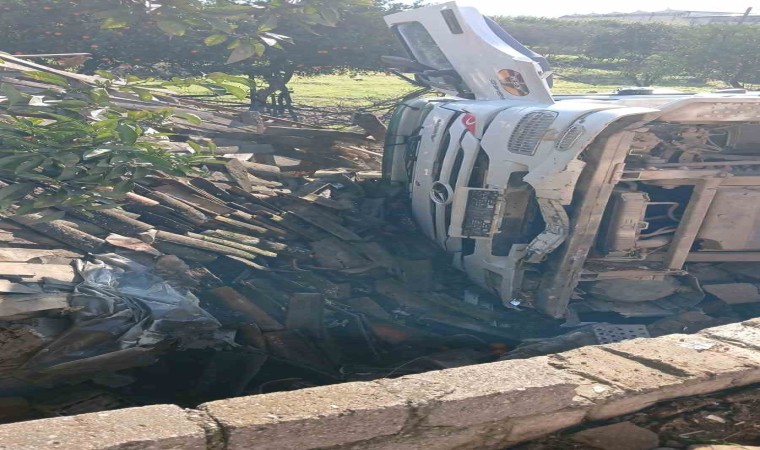 Aydın Denizli Karayolu’nda seyir halindeyken şehirlerarası otobüse arkadan çarpan kum yüklü kamyon, yol kenarındaki bir evin bahçesine devrildi. Korkutan kazada şans eseri yaralanan olmadı.