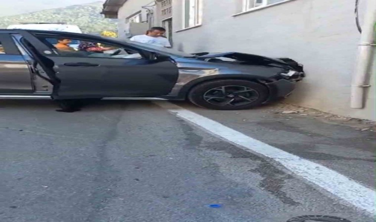Bursa’da belediye otobüsüne çarpmamak için eve dalan otomobil sürücüsü hafif şekilde yaralandı.