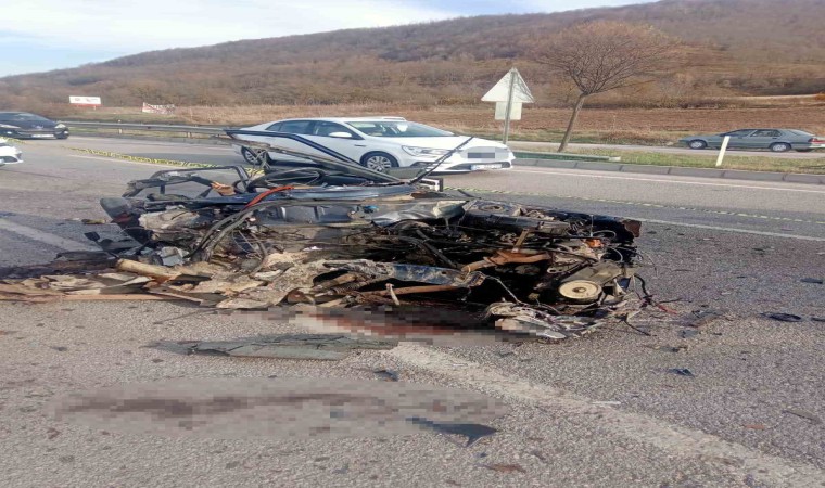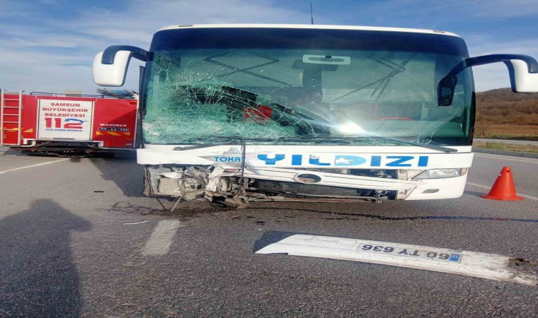 Samsun’da karşı şeride geçerek otobüsle kafa kafaya çarpışan otomobilin parçalara ayrıldığı kazada 2 kişi hayatını kaybetti, 3 kişi yaralandı.
