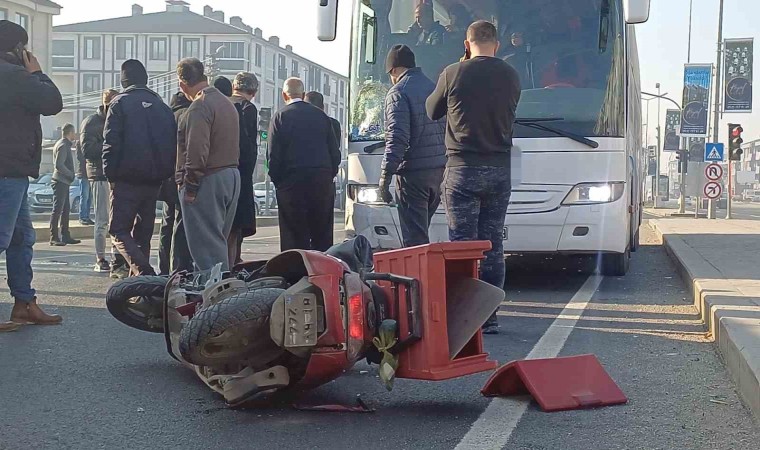 Düzce Metek ışıklı kavşakta meydana gelen trafik kazasında yolcu otobüsü ile motorlu kurye çarpıştı. Kazada motosiklet sürücüsü yaralandı.