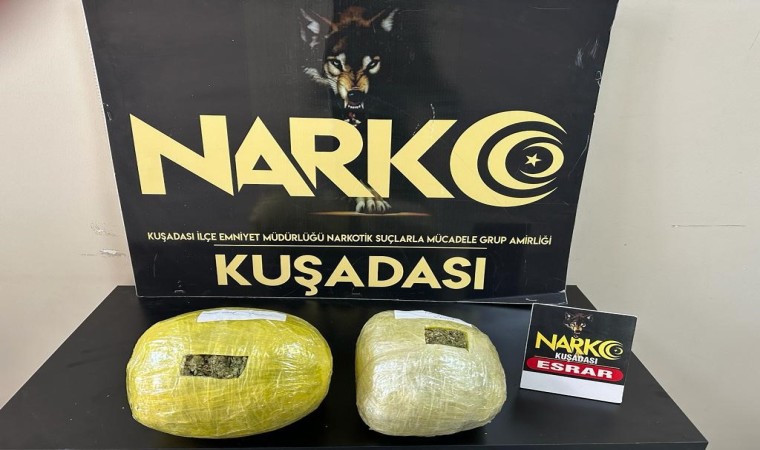 Kuşadası İlçe Emniyet Müdürlüğü Narkotik Suçlarla Mücadele Grup Amirliği ekiplerinin uyuşturucu madde kullanımı ve ticaretinin önlenmesine yönelik çalışmaları aralıksız sürüyor. Başarılı operasyonlarına bir yenisini daha ekleyen narkotik ekipleri edinilen bilgiye göre, yolcu otobüsü ile kente uyuşturucu getirileceği istihbaratı değerlendirerek otobüsü takibe aldı. Operasyon için düğmeye basan ekipler, Kuştur Uygulama noktasında otobüsü durdurdu. Otobüs içerisinde narkotik dedektör köpeği Honaz eşliğinde yapılan aramalarda bagaj kısmında çuval içerisindeki kuruyemişlerin içerisine gizlenmiş vaziyette 2 parça halinde 1 kilo 200 gram esrar ele geçirildi. Bagaj sahibi R.E. isimli şüpheli şahıs da kıskıvrak yakalanarak gözaltına alındı.