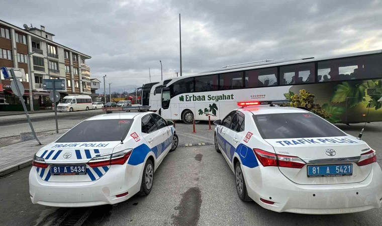Ülke genelinde artan otobüs kazalarının ardından Düzce’de polis ekipleri denetimlerini sıklaştırdı. Otogardan çıkan tüm otobüslerde kış lastiği ve emniyet kemeri denetimi yapılıyor.
